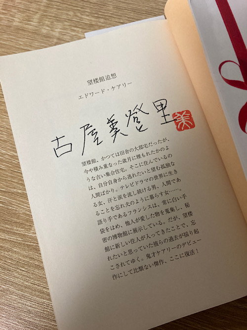 個人的には、前から読みたかったエドワード・ケアリーの小説(翻訳家署名入り)を買うことができて良かった。早速読んだけど内容もGOODでした。